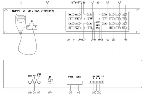 同時(shí)GST-GBFB-200廣播分配盤也通過RS485串行總線與消防控制器相連接,一起完成消防聯(lián)動控制。另外根據(jù)現(xiàn)場的需要,它可以外接兩個(gè)擴(kuò)展鍵盤,增大了控制區(qū)域數(shù)量,它可以同時(shí)接入最多兩路功放,以滿足工程上的最大限度的需要,在作為應(yīng)急廣播也兼顧了正常廣播播音的需要,二者自由切換,應(yīng)急廣播優(yōu)先。