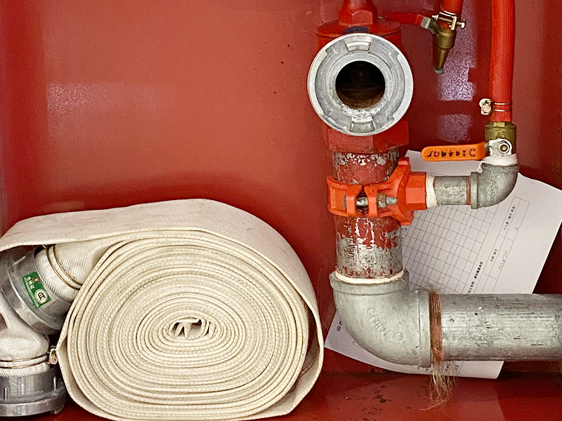 3)檢查消火栓箱內(nèi)水帶、水槍、接扣、自救卷盤、小錘,應(yīng)完整無缺失。