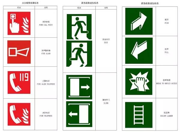 本次修訂發(fā)布的國家標(biāo)準(zhǔn)《消防安全標(biāo)志第1部分:標(biāo)志》,將消防安全標(biāo)志分為火災(zāi)報(bào)警裝置標(biāo)志、緊急疏散逃生標(biāo)志、滅火設(shè)備標(biāo)志、禁止和警告標(biāo)志、方向輔助標(biāo)志、文字輔助標(biāo)志等6類,共有25個(gè)常見標(biāo)志和2個(gè)方向輔助標(biāo)志。該標(biāo)準(zhǔn)規(guī)定了每一種標(biāo)志的含義和說明,以及實(shí)際制作使用的標(biāo)志型號(hào)和對(duì)應(yīng)的公稱尺寸,提供了消防安全標(biāo)志、文字輔助標(biāo)志與方向輔助標(biāo)志組合使用的應(yīng)用范例。