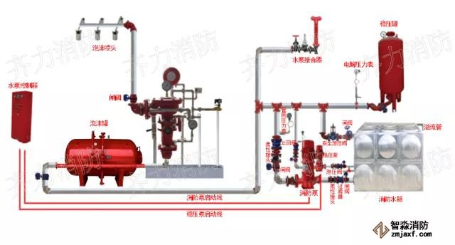 2)先后觸發(fā)防護區(qū)內(nèi)兩個火災(zāi)探測器或為傳動管泄壓,查看電磁閥、消防水泵及壓力開關(guān)的動作情況及反饋信號。