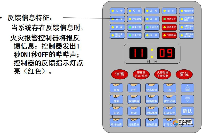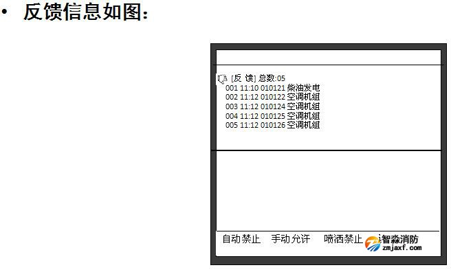 4.控制器可配置多塊手動(dòng)消防啟動(dòng)盤(pán),完成對(duì)總線(xiàn)制外控設(shè)備的手動(dòng)控制;可配置多塊14路直接控制盤(pán),完成對(duì)消防控制系統(tǒng)中重要設(shè)備的控制;可擴(kuò)充消防廣播控制盤(pán)和消防電話(huà)控制盤(pán),組成消防廣播和消防電話(huà)系統(tǒng);每個(gè)回路最多可同時(shí)配置4臺(tái)64點(diǎn)手動(dòng)消防啟動(dòng)盤(pán)+4臺(tái)14路直接控制盤(pán)+兩個(gè)消防廣播控制盤(pán)(或2個(gè)消防電話(huà)控制盤(pán)或1個(gè)消防廣播控制盤(pán)+1個(gè)消防電話(huà)控制盤(pán))