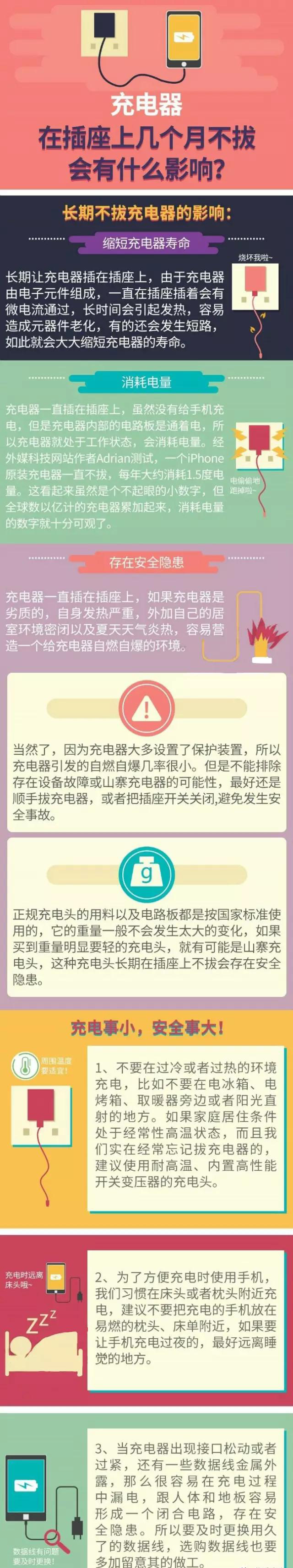 給手機充完電的時候,相信很多人都有不拔充電器的習慣,有的甚至一年到頭都沒拔過手機充電器。那么在手機不充電的狀況下,充電器長時間插在插座上會有什么影響?今天小編帶大家來揭秘一下。
