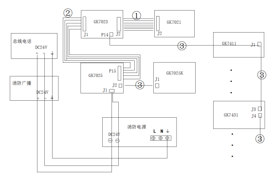 2、標(biāo)號(hào)③的線規(guī)格為線徑0.75(壁掛)、1.0(琴臺(tái)/立柜)的紅黑雙絞線,端子間距為7.62
