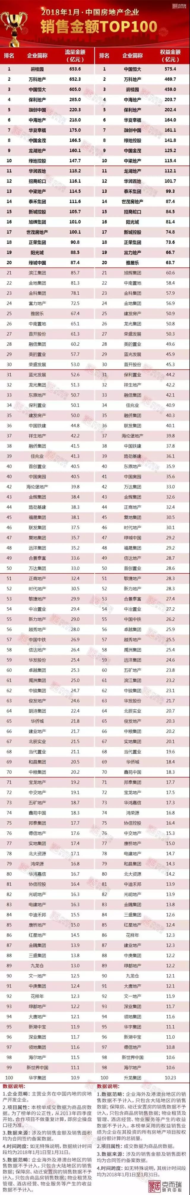 2018年1月中國房地產(chǎn)企業(yè)銷售TOP100排行榜發(fā)布