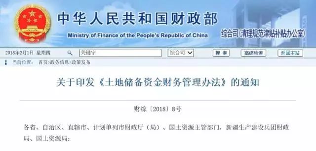 財政部國土部出臺《土地儲備資金財務(wù)管理辦法》,今起實施