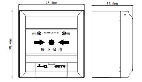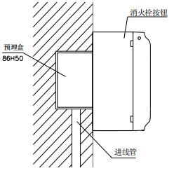消火栓按鈕采用明裝方式,分為進(jìn)線管明裝和進(jìn)線管暗裝:進(jìn)線管暗裝時只需拔下按鈕,從底殼的進(jìn)線孔中穿入電纜并接在相應(yīng)端子上,再插好按鈕即可安裝好,安裝示意圖見圖 2- 11;進(jìn)線管明裝時只需拔下按鈕,將底殼下端的敲落孔敲開,從敲落孔中穿入電纜并接在相應(yīng)端子上,再插好按鈕即可安裝好,安裝示意圖見圖 2- 12;安裝孔距為 60mm。