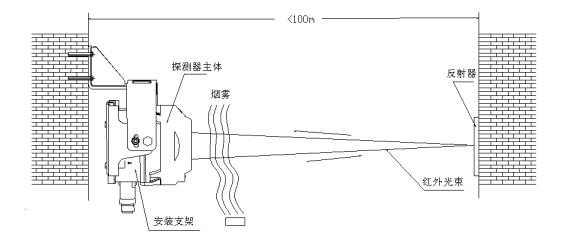 將探測(cè)器與反射器相對(duì)安裝在保護(hù)空間的兩端且在同一水平直線(xiàn)上,外形安裝圖如圖1-39所示: