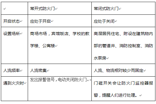 防火門常開式和常閉式設(shè)置上的區(qū)別