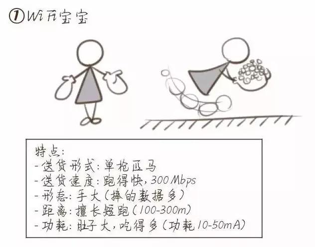 手機(jī)的普及使普通老百姓大爺大媽們都知道了 GPRS、3G/4G/5G,實(shí)際上GPRS、3G/4G/5G都屬于無(wú)線廣域網(wǎng);中國(guó)網(wǎng)絡(luò)的強(qiáng)大使老外都想扎根中國(guó),享受無(wú)處不在的WIFI,Wi-Fi 、藍(lán)牙、ZigBee、RFID、NFC等都屬于無(wú)線局域網(wǎng),用一組來(lái)自網(wǎng)絡(luò)的漫畫(huà)可更好的詮釋常用的各無(wú)線技術(shù)的特點(diǎn)。