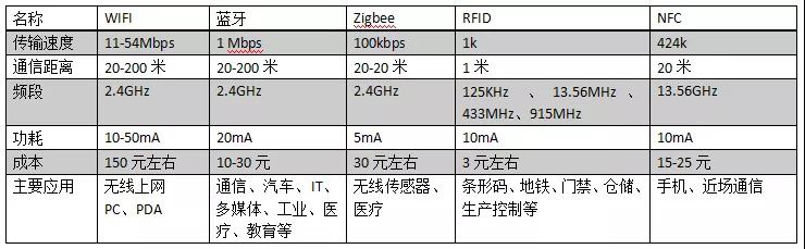 下面是各無(wú)線技術(shù)的參數(shù)對(duì)比表: