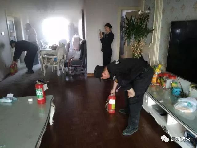 住戶疏散離開現(xiàn)場后,滅火組迅速使用滅火器展開滅火,有效熄滅火源。