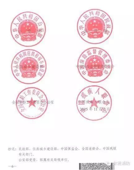 2015年11月2日,公安部、民政部、住房城鄉(xiāng)建設(shè)部、中國(guó)保險(xiǎn)監(jiān)督管理委員會(huì)、全國(guó)老齡工作委員會(huì)辦公室、中國(guó)殘疾人聯(lián)合會(huì)聯(lián)合署名《積極推動(dòng)發(fā)揮獨(dú)立式感煙火災(zāi)探測(cè)報(bào)警器火災(zāi)防控作用的指導(dǎo)意見(jiàn)》