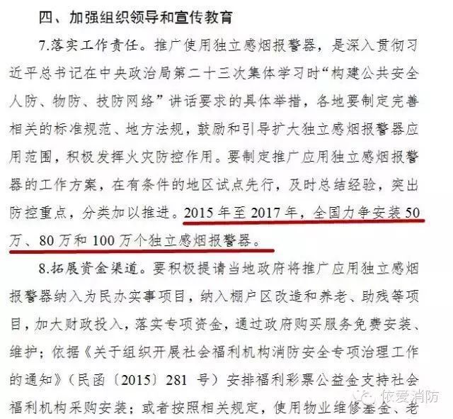 該文件強(qiáng)調(diào)了獨(dú)立感煙探測(cè)報(bào)警器在九小場(chǎng)所預(yù)防火災(zāi)中起到的積極作用,并在第四.7中明確要求推行獨(dú)立感煙的量化目標(biāo)。
