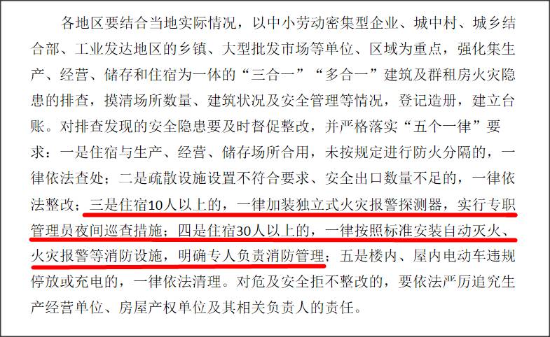 針對(duì)近期發(fā)生的幾起嚴(yán)重的三合一場(chǎng)所火災(zāi)事故,安委辦發(fā)布了“國(guó)務(wù)院安委會(huì)辦公室關(guān)于近期幾起火災(zāi)事故的通報(bào)”。通報(bào)中再一次明確了加裝獨(dú)立式感煙探測(cè)器的硬性條件及相關(guān)規(guī)定。