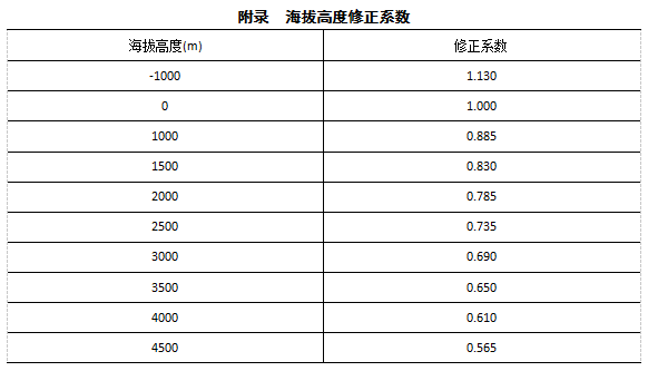 第四步:查出您所在地區(qū)的海拔修正系數(shù)K,K值可根據(jù)規(guī)范GB50370-2005 附表查詢。
