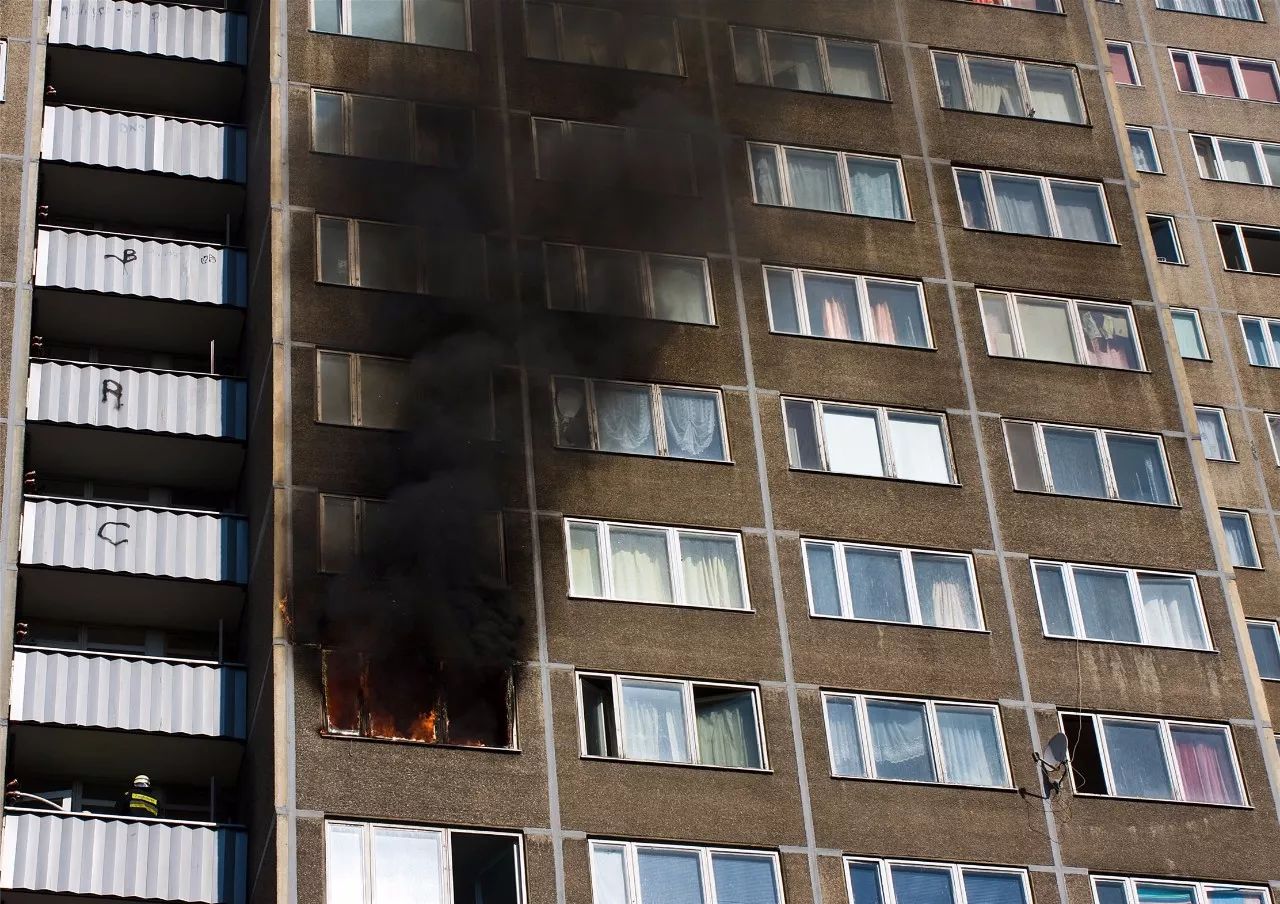 如果發(fā)現(xiàn)住宅樓的外墻保溫材料起火,必須盡快往樓下疏散逃生,留在家里避險非常危險。
