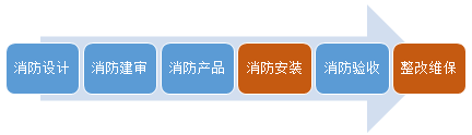 消防工程行業(yè)主要進(jìn)行消防水系統(tǒng)、火災(zāi)自動(dòng)報(bào)警系統(tǒng)、氣體滅火系統(tǒng)、防排煙系統(tǒng)、應(yīng)急疏散系統(tǒng)等的建筑安裝與維護(hù)。按照業(yè)務(wù)介入時(shí)間的不同,消防工程可以分為首次安裝、整改和維護(hù)保養(yǎng)。從整個(gè)消防產(chǎn)業(yè)鏈看,其所處的位置如下圖所示: