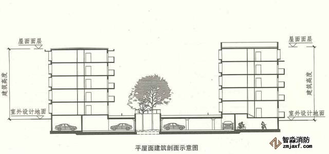 建筑屋面為平屋面(包括有女兒墻的平屋面)時(shí),建筑高度應(yīng)為建筑室外設(shè)計(jì)地面至其屋面面層的高度。