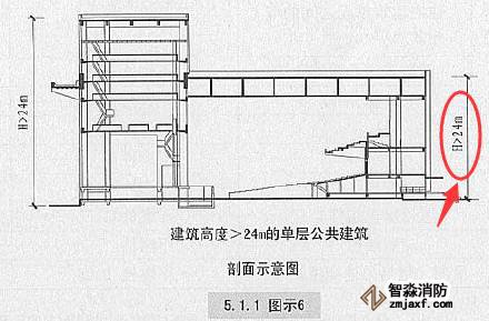 1.建筑高度大于24m的單層公共建筑;【圖示6】 2.建筑高度不大于24m的其他公共建筑?!緢D示7】
