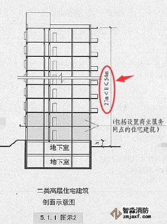 建筑高度大于27m,但不大于54m的住宅建筑(包括設(shè)置商業(yè)服務(wù)網(wǎng)點(diǎn)的住宅建筑)【圖示2】 |
