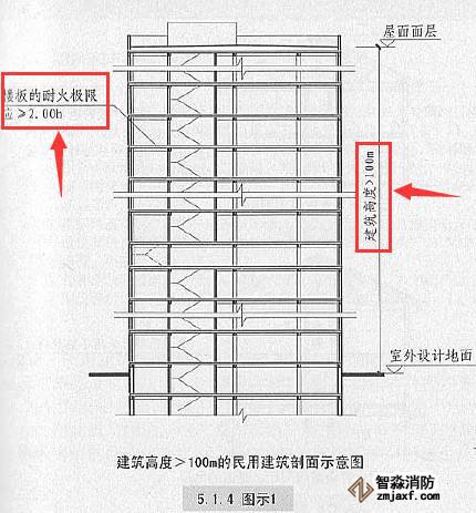 5.1.4建筑高度大于100m的民用建筑,其樓板的耐火極限不應(yīng)低于2.00h【圖示1】