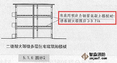 二級(jí)耐火等級(jí)多層住宅建筑內(nèi)采用預(yù)應(yīng)力鋼筋混凝土的樓板,其耐火極限不應(yīng)低于0.75h?!緢D示2】