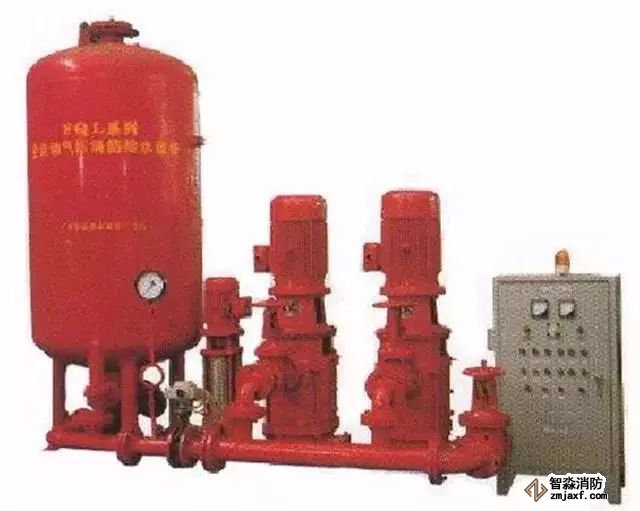 由鋼質(zhì)外殼,橡膠隔膜內(nèi)膽構(gòu)成的儲能器件,橡膠隔膜把水室和氣室完全隔開,當(dāng)外界有壓力的水充入隔膜式氣壓水罐的內(nèi)膽時,密封在罐內(nèi)的空氣被壓縮,根據(jù)波義耳氣體定律,氣體受到壓縮后體積變小,壓力升高儲存能量,壓縮氣體膨脹可以將橡膠隔膜內(nèi)的水壓出罐體。