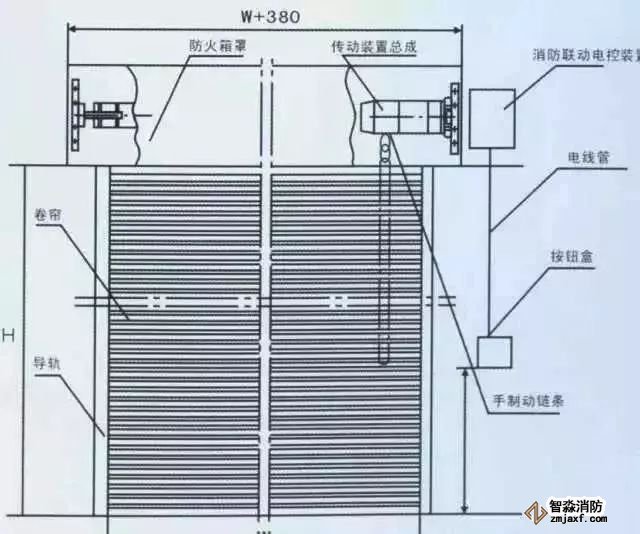 防火卷簾簾面通過傳動裝置和控制系統(tǒng)達(dá)到卷簾的升降;從而起到防火、隔火作用。