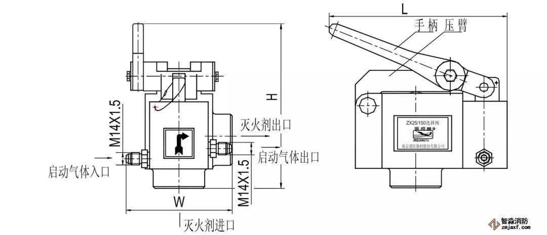 選擇閥安裝在集流管上,進(jìn)口與集流管連接,出口與滅火劑輸送管道連接。選擇閥主要用于組合分配系統(tǒng)中控制滅火劑流動方向,保證滅火劑進(jìn)入發(fā)生火災(zāi)的保護(hù)區(qū)。