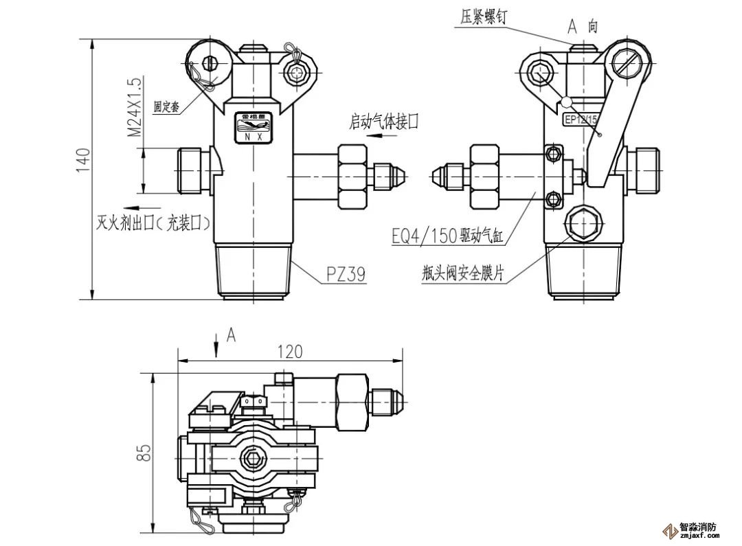 瓶頭閥安裝在滅火劑儲瓶上,用以密封儲瓶內(nèi)的滅火劑?;馂?zāi)時,一般由啟動氣體將瓶頭閥打開,釋放滅火劑,實(shí)施滅火。