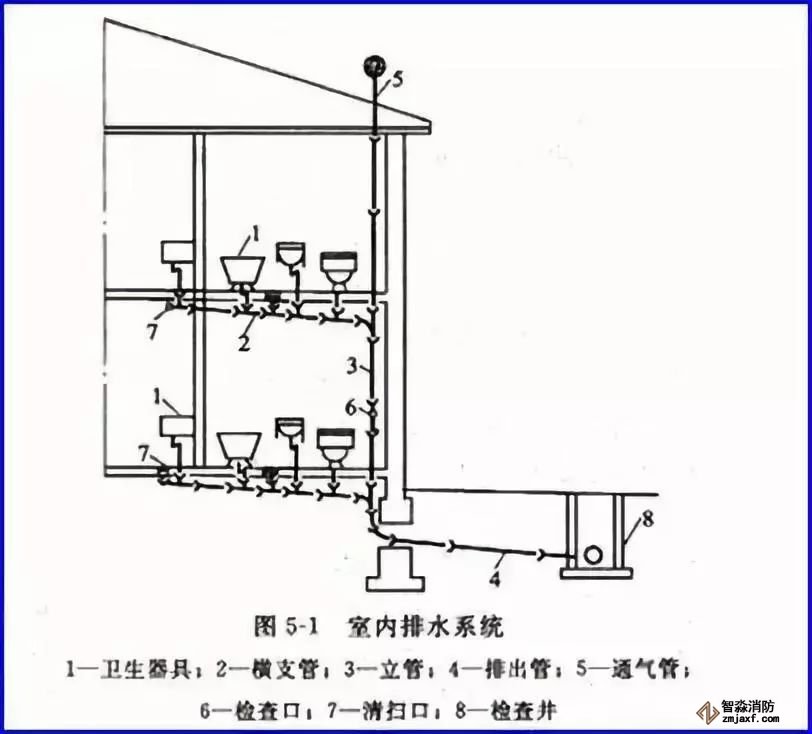 由連接衛(wèi)生器具的排水管道,有一定坡度的橫支管、立管、埋設(shè)在室內(nèi)地下的總橫干管和排出到室外的排出管等組成。