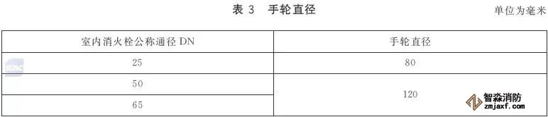 室內消火栓的進水口應為圓柱管螺紋,其進水口的螺紋尺寸應符合表3的規(guī)定;閥桿與閥桿螺母應為梯形螺紋。