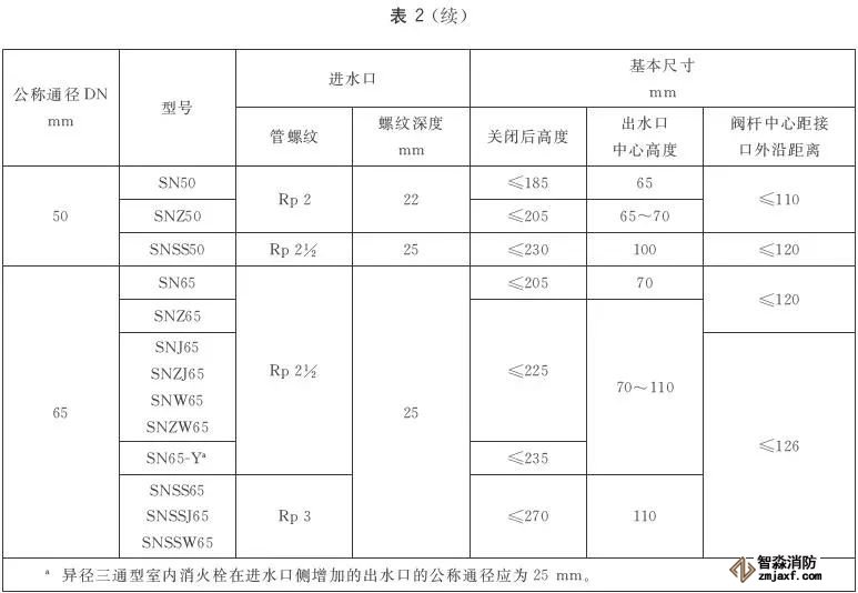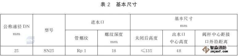室內消火栓的基本尺寸應符合表2的規(guī)定。尺寸公差應符合GB/T 1804—2000中V級的規(guī)定。