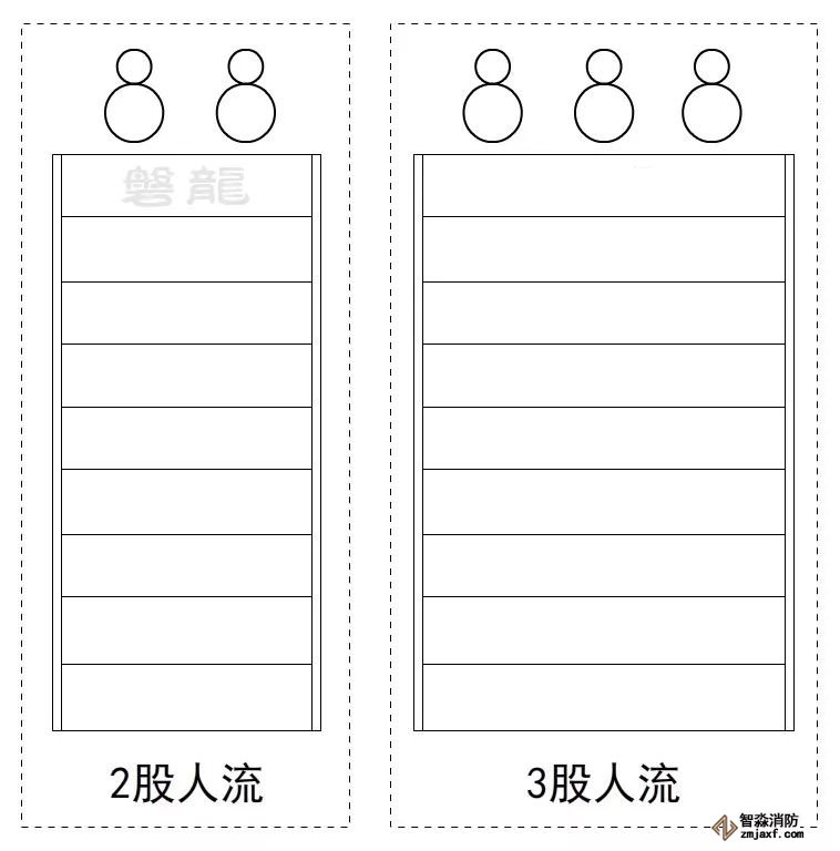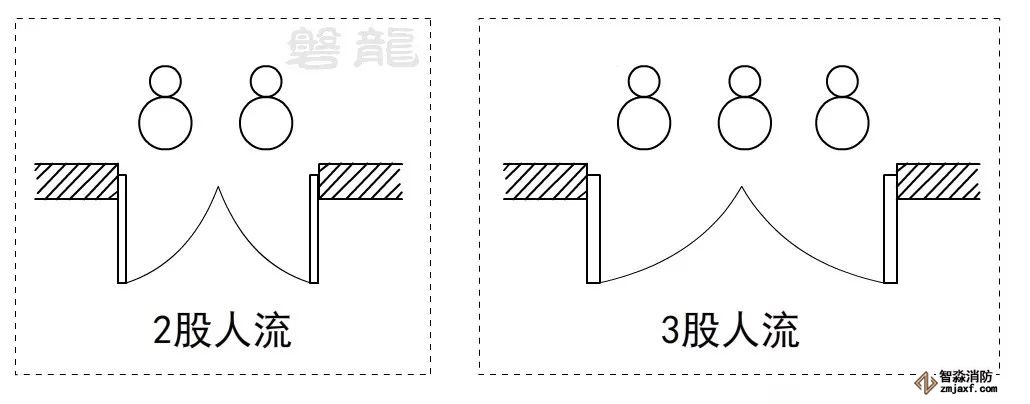 通常認為,最有效的疏散方式,是以單股或多股人流的形式有序進行,觀眾廳等人員密集場所的疏散門,以及學校場所的疏散樓梯等,其疏散凈寬度應為人流股數(shù)的整數(shù)倍,以確保最高的疏散效率,防止踩踏事故發(fā)生。