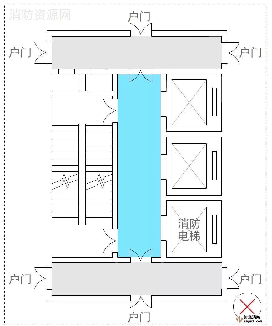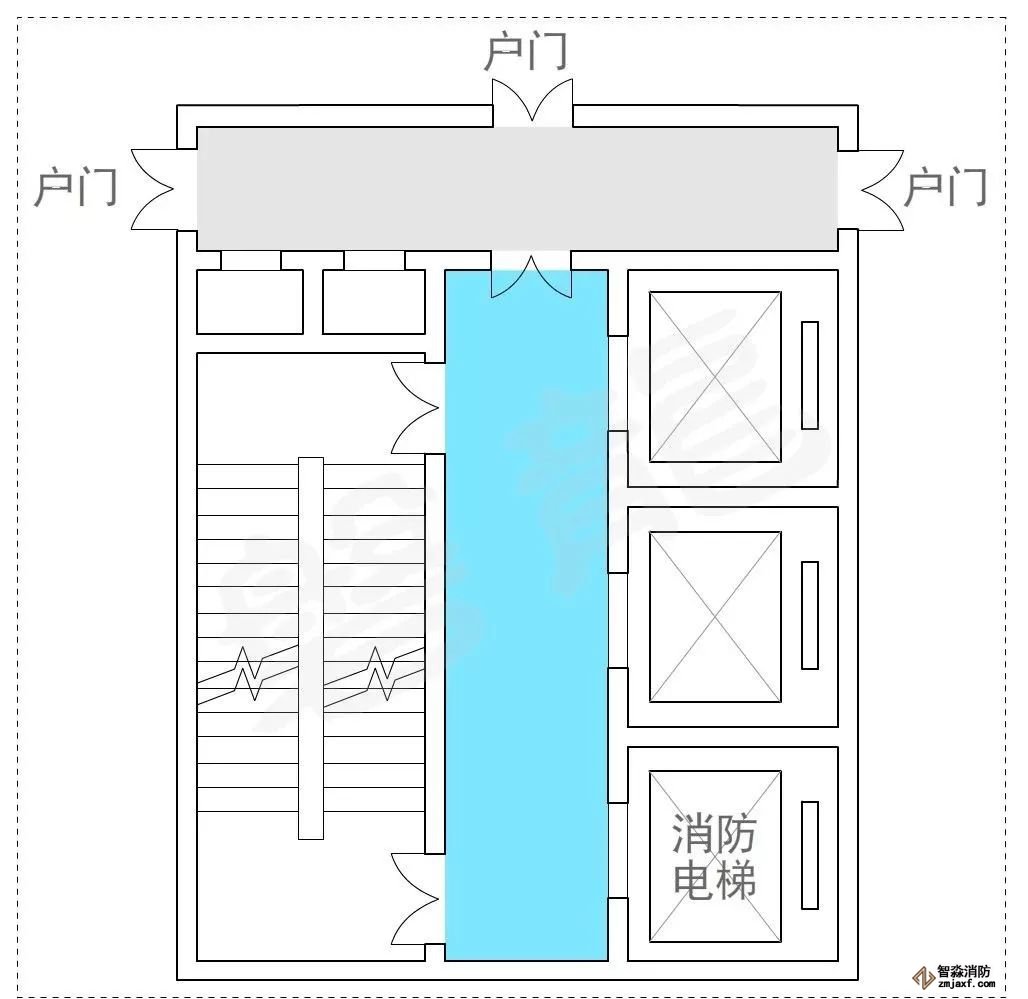在示例1中,開向前室的門不超過3樘,通常認(rèn)為可行,示例2、示例3在前室加了一道門,有效規(guī)避了管井、電井門直接開向前室的情況,安全保障有所提升,通常認(rèn)為可行。