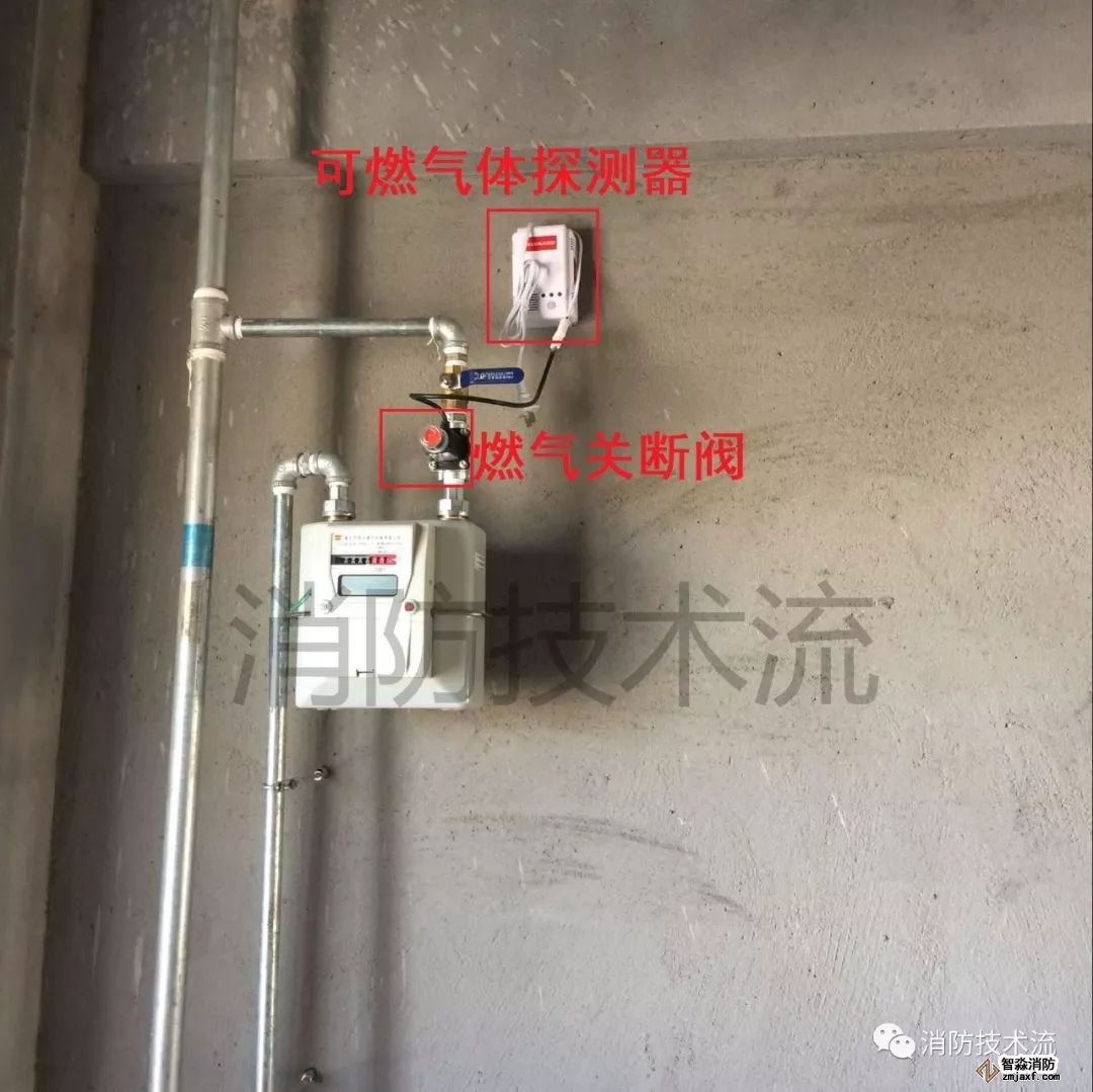 可燃氣體探測器需聯(lián)動關斷燃氣閥門,設計圖例、實物圖這里都有