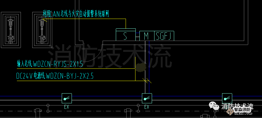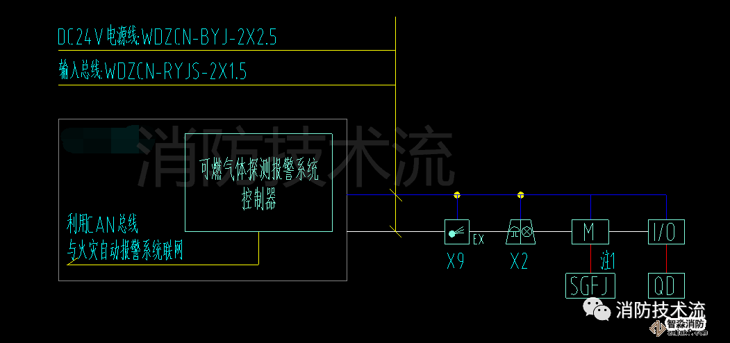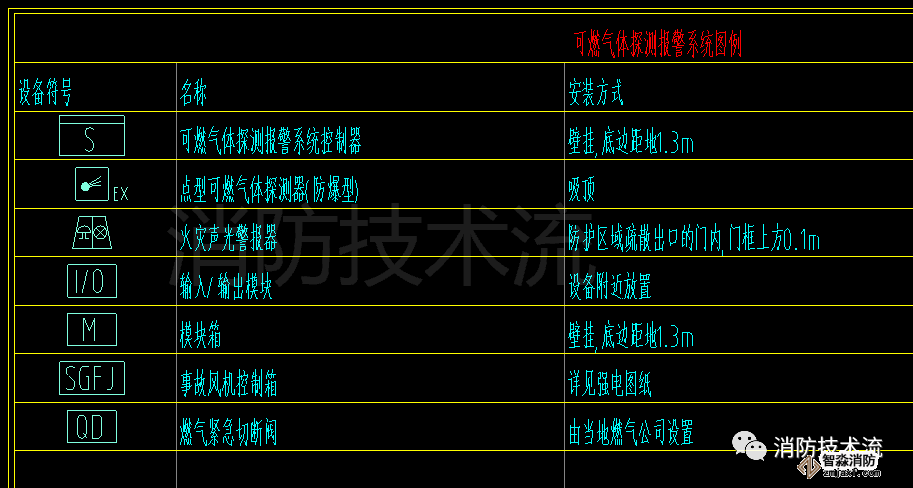 可燃氣體探測器需聯(lián)動關斷燃氣閥門,設計圖例