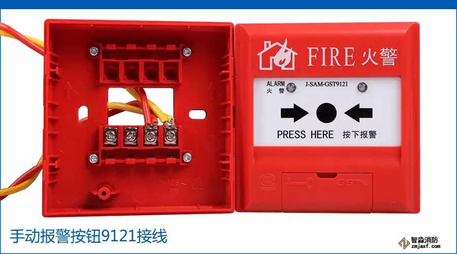 手動報警按鈕9121,不帶電話插孔,只需接信號總線。信號線一組來自上面感煙火災探測器,一組接到我們今天的主角輸入輸出模塊8301上。