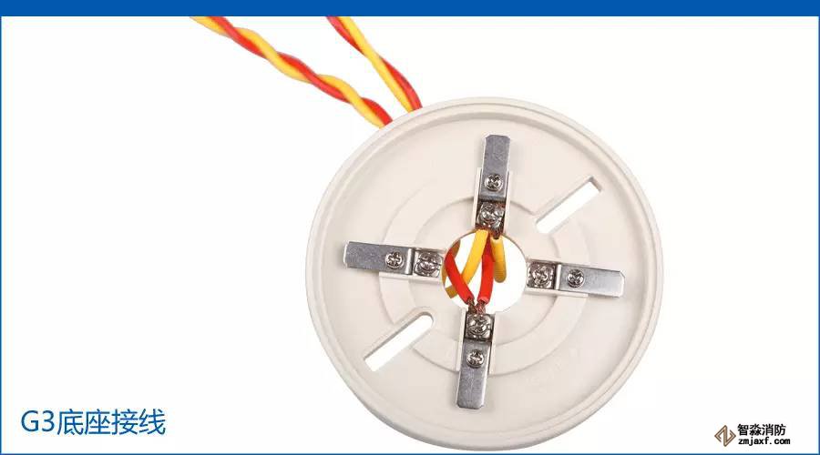 感煙火災探測器G3的接線表哥不詳述了,接相對的兩個端子。圖中一路接到控制器,一路是接到手動報警按鈕9121上。海灣總線無極性,翻譯成人話也就是不分正反。如上圖中的一組紅黃兩根線,把紅色和黃色對調(diào)也是沒有問題的。