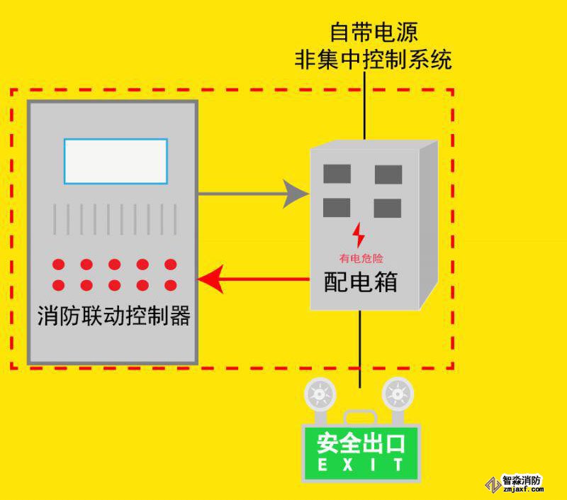 (4)自帶電源非集中控制系統(tǒng)應由消防聯(lián)動控制器聯(lián)動消防應急照明配電箱實現(xiàn)。