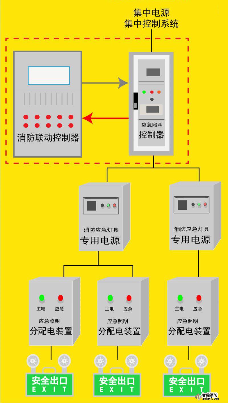 (1)集中電源集中控制系統(tǒng)應由火災報警控制器或消防聯(lián)動控制器啟動應急照明控制器實現(xiàn)。