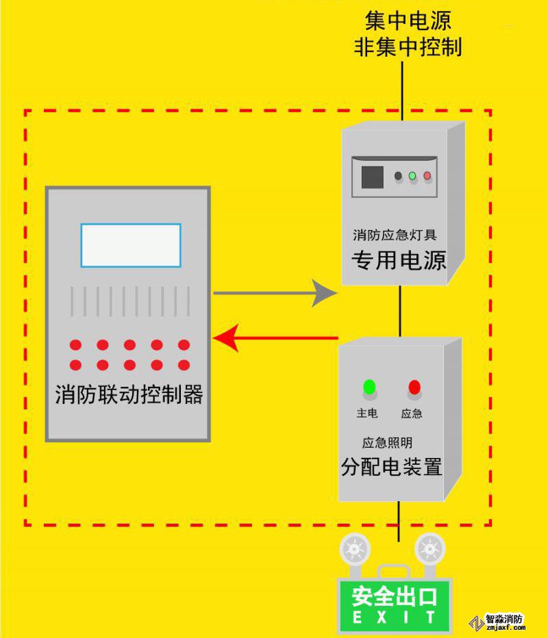 (3)集中電源非集中控制系統(tǒng)應由消防聯(lián)動控制器聯(lián)動應急照明集中電源和應急照明分配電裝置實現(xiàn)。
