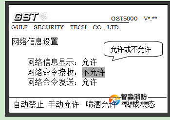 2 網(wǎng)絡信息顯示-不允許:控制器不接收不顯示網(wǎng)絡上傳來的火警、故障、恢復、延時、自檢等網(wǎng)絡信息