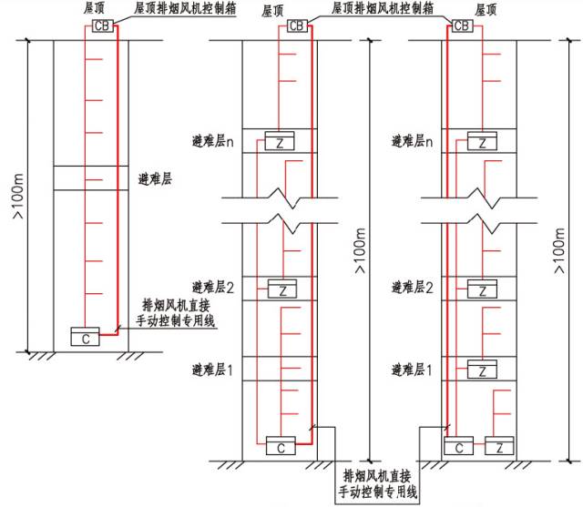 02 超過100m的建筑,除消防控制室內(nèi)設(shè)置的控制器外,每臺控制控制的火災(zāi)探測器、手報和模塊等不應(yīng)跨越避難層。