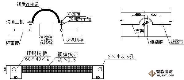 一、避雷帶、接地連接母線過沉降、伸縮縫安裝做法