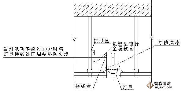 十一、吊頂內(nèi)接線盒到燈具金屬軟管的施工細部做法: