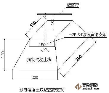 ⑸ 屋頂避雷帶支架在預制混凝土塊上安裝做法: