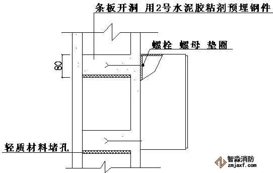 ⑷搭接板應預埋,其與窗框或門框可螺栓連接或焊接。