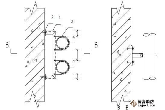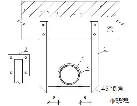 1.角鋼 2.連接板(6mm) 3.管碼 4.管道
