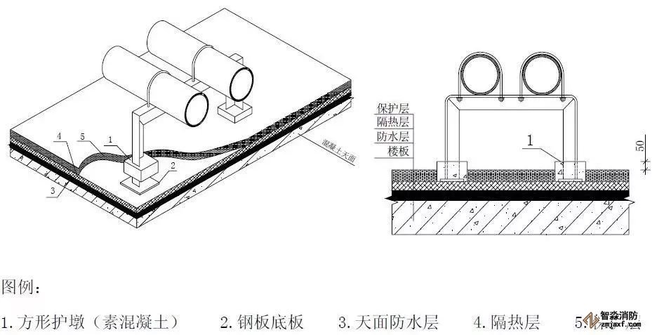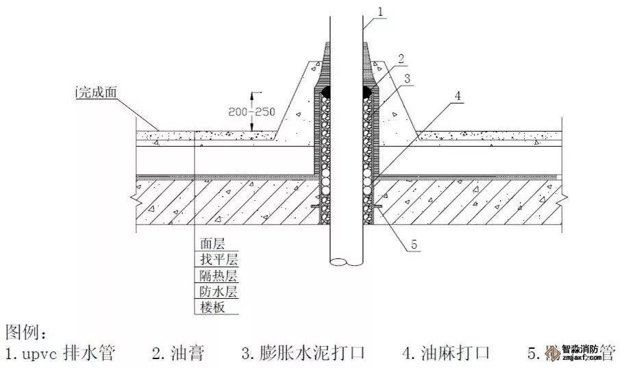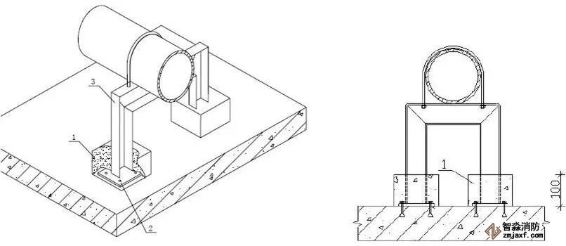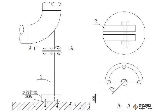 柱管法蘭盤距離地面完成面小于等于一米,管道直徑為DN100?150時(shí),柱管為DN50;管道直徑為DN200?250 時(shí),柱管為DN65mm;當(dāng)設(shè)計(jì)另有減振要求時(shí),需另考慮設(shè)置減振等